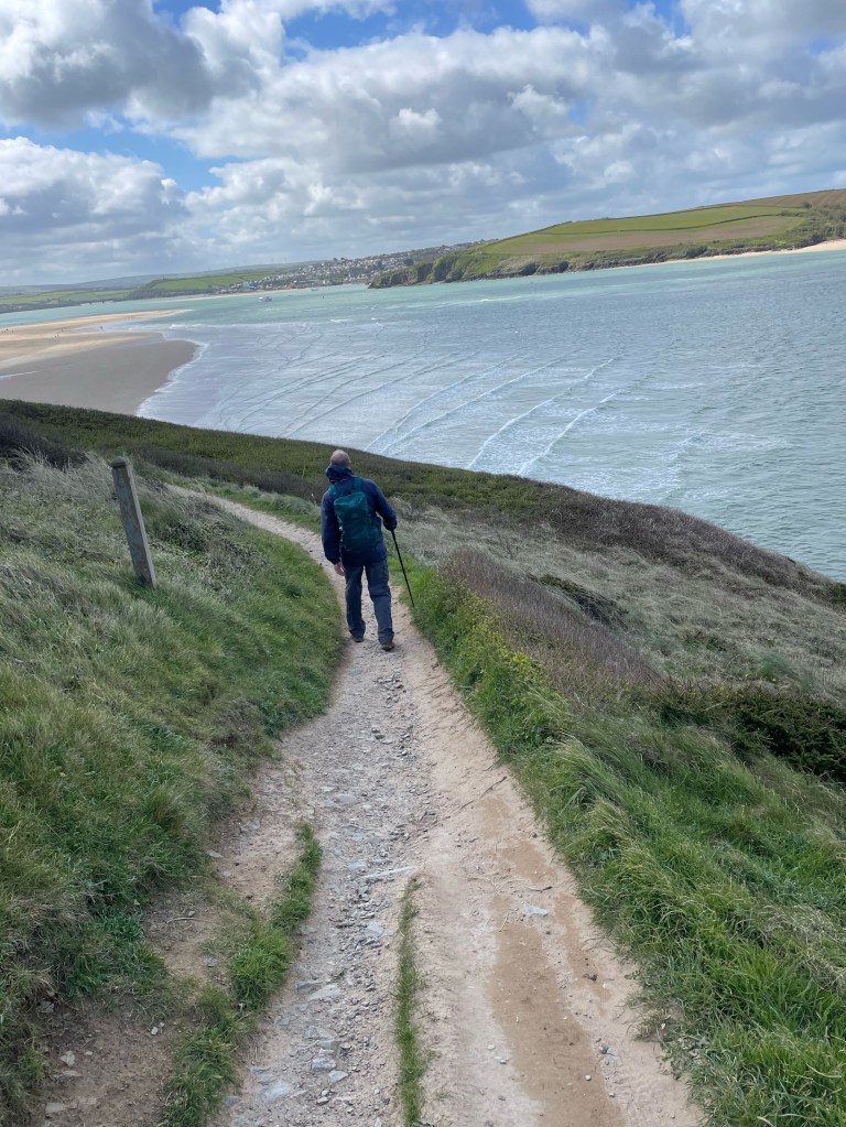 It was lovely to get to our accommodation at The Farmer’s Arms, and enjoy a deep, hot bath after our exertions. Unfortunately, the toilet stopped flushing, so we decided to go down to the bar for a drink and advise the landlady of our issue. There was a handful of other customers, so I was only vaguely aware of a man who walked in and started talking to a couple at a nearby table. But our ears pricked up when he asked them if they’d been walking past Stepper Point today. Paul chipped in and said we were there earlier, and it was then that I clocked he was wearing a coastguard uniform-he had Paul’s walking pole! He had come on a later shift and volunteered to drop it off as St Merryn was on his way; did I say where we were staying or did he deduce it? Either way, I can’t think that anyone would have gone to that much trouble anywhere other than Cornwall [or, as I like to think of it, my ancestral home!], though it was fortunate we just happened to be in the bar when he walked in! So Paul got his pole back, and we got a room upgrade as the loo couldn’t be fixed-what a great end to a great day!