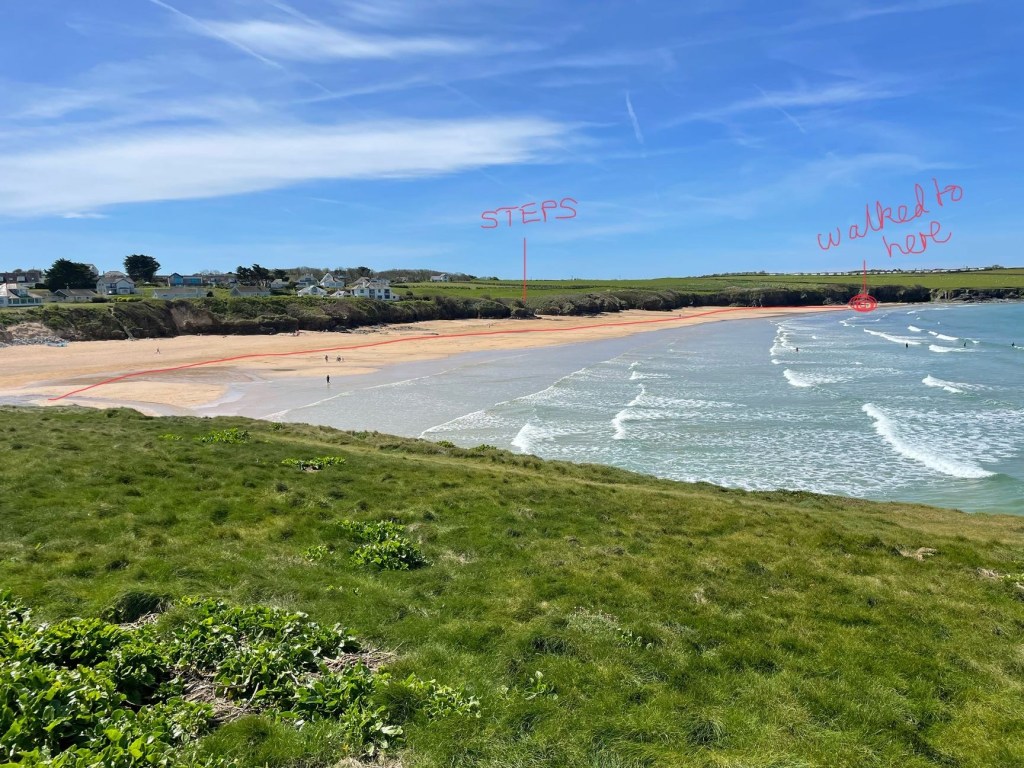 The male and female coastguards were both super friendly and chatty. The man told me about the dangerous tidal flows as the Camel meets the sea; it’s known as the Doombar, after which the beer is named. He asked about our walk [this is important as you’ll see later] and I must have said we were staying at St Merryn, but walking to Constantine Bay. Meanwhile, Paul was filling in their visitor book, and we both had a look at Lundy Island through the telescope; at 37 miles away it’s not usually visible unless it’s a very clear day.