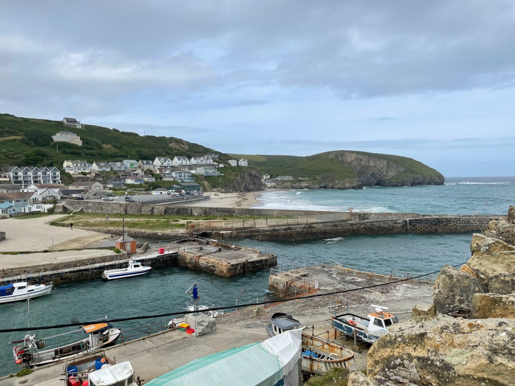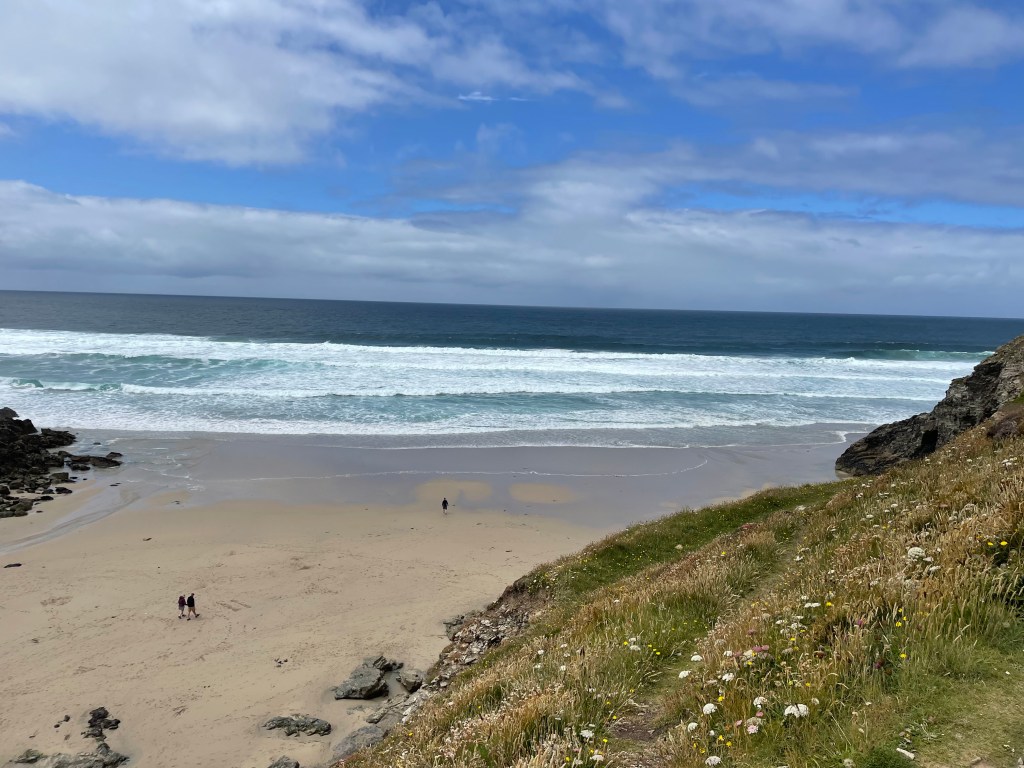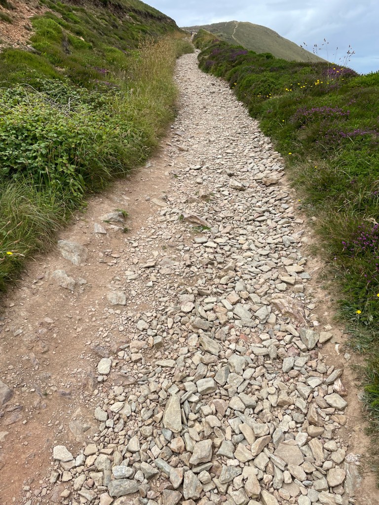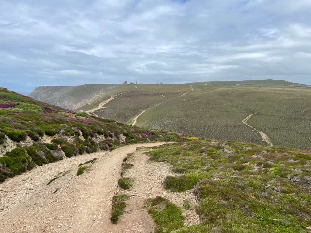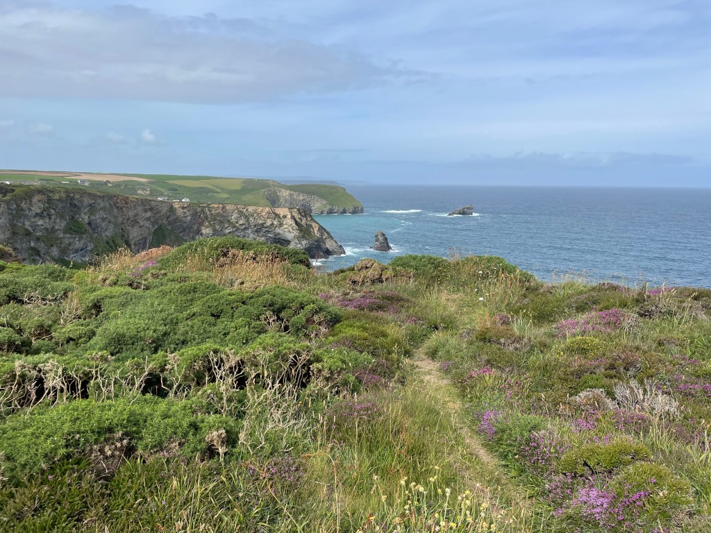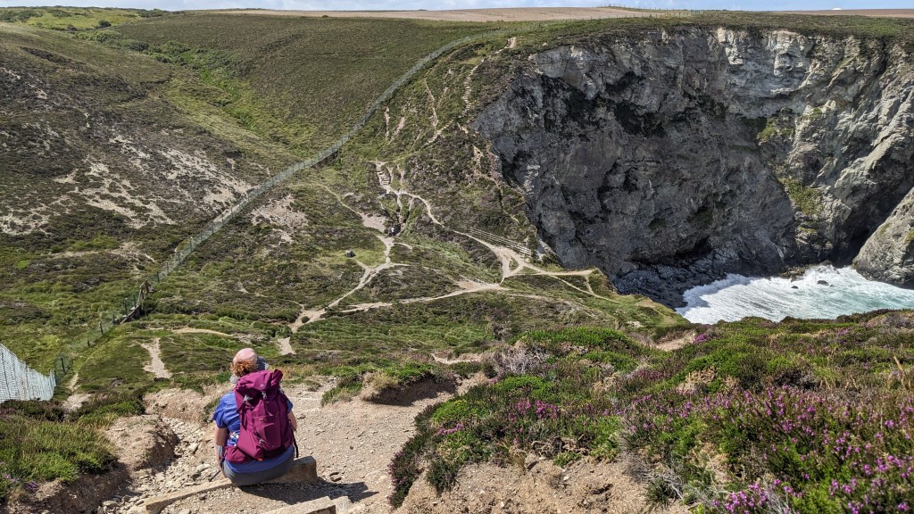 The weather had been lovely all morning, but as we set off again, we experienced one of Cornwall’s well known sudden downturns as it began to rain. This was particularly bad news, as, having logged 0% chance of rain on the forecast, I had left my waterproofs in the suitcase [I like to save weight in my rucksack wherever possible]. I zipped up my fleece and resigned myself to getting wet! My photos don’t show the bad weather, I guess I kept my phone in my pocket!