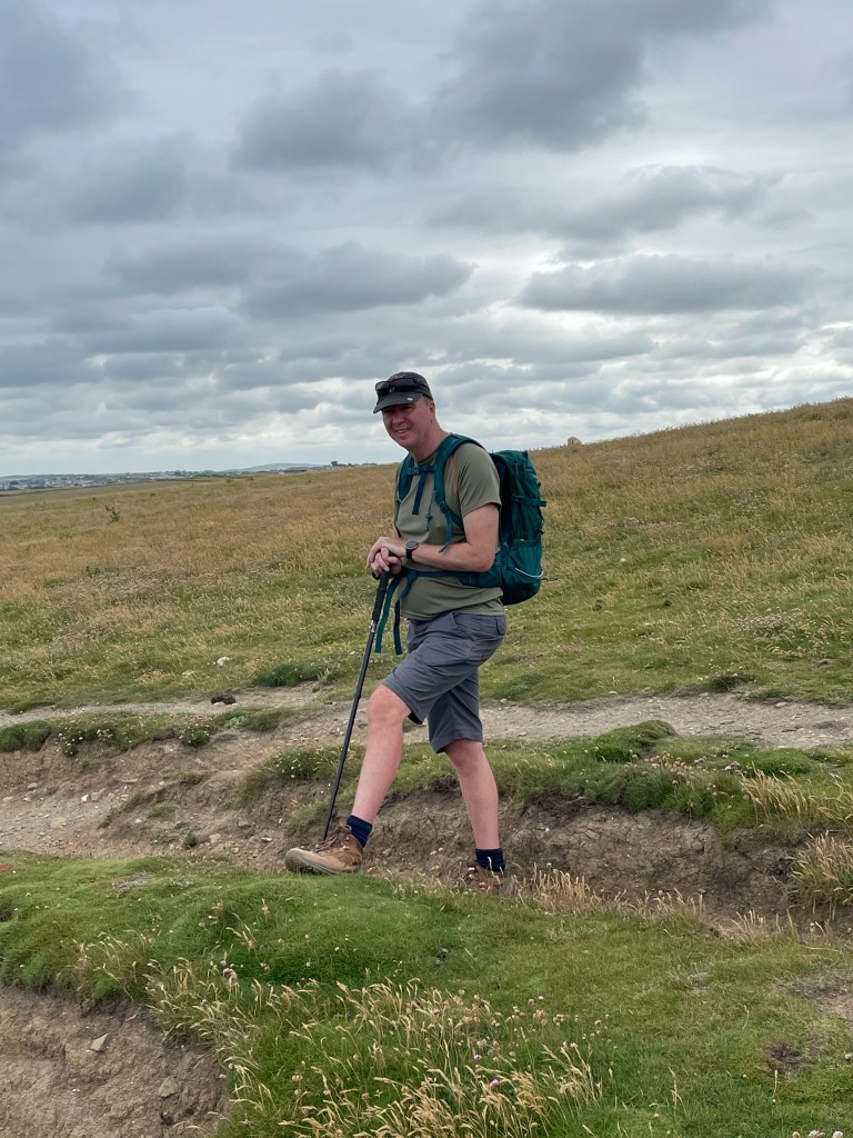 We’d had the best shower of the week at our stay in Holywell Bay, followed by a leisurely breakfast and late start of 9.45 am. For once though, it wasn’t only me nursing my feet; Paul [“I love my boots and will get the exact same pair again when they wear out”] was suffering from blisters on the tender part of the foot just below the toes, next to the ball. If the cause was walking on the dunes yesterday, there was bad news; more of the same lay ahead.