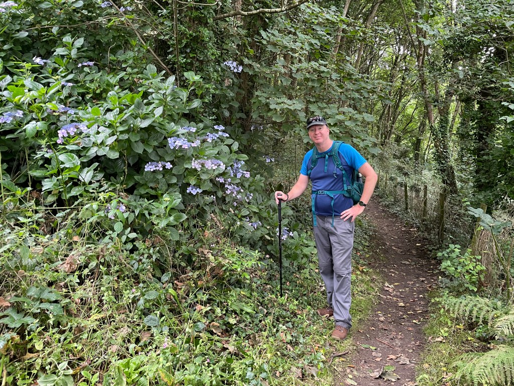 We resumed at 2 pm, hoping to arrive at The Ship Inn around 3.30. I’m afraid I have no photographic evidence, but we came across an unusually muddy section that we had to pick our way over on logs and stones, and my voice memo notes that if we had slipped off, we would have been up to our knees in mud! Obviously, I was too busy staying upright to take a snap. I sounded really tired recording my last message, we’d had to climb another big hill, and Paul opined in his understated manner that he’d ‘seen quite enough rocks now.’ Although I’m weaker overall than Paul, he isn’t immune to suffering a bit himself-when we reached our accommodation at the pub he collapsed on the bed, and I was forced to take his socks off for him [those of you who know me well will appreciate that I don’t normally go anywhere near other people’s feet, but I did make some promise about sickness and health when we got married!].