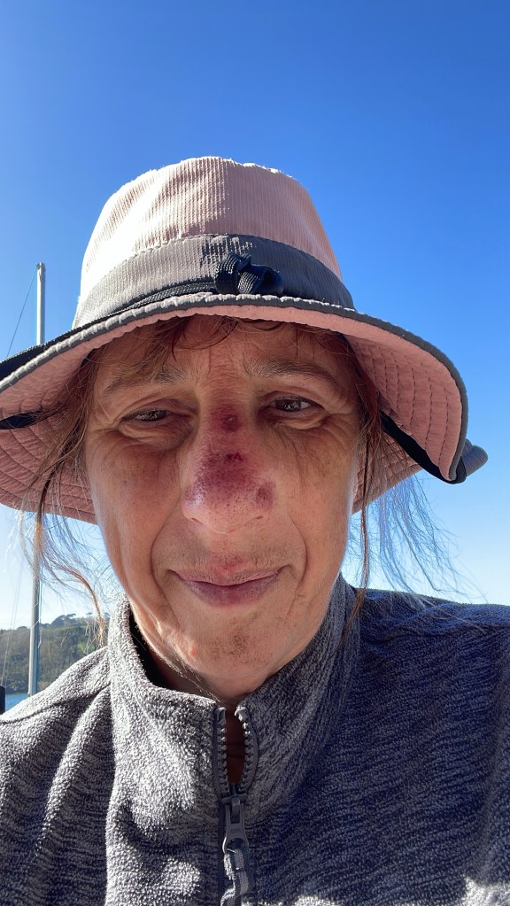 By three o’clock we were walking alongside the Helford Passage, a very scenic inlet, but one of those sections where you never seem to reach your destination (in this case, the Helford ferry crossing point). I took out my phone to record a voice memo, but my FaceID wouldn’t work, presumably because my nose was so horribly deformed! At least it was sunny and pleasant to be outside, as it seemed like we were never going to actually get to the ferry-we had to go all the way through the village and ask where it was, but we finally arrived just as the boat pulled up, so we got straight on it to take us to Mawnan Smith. We were too early for check in, so we had a drink at the Ferry Boat Inn, before we made our way up a final hill to our AirBnB stay-the most expensive stop of the week! Having said that, it was a beautiful house, with a lovely bedroom and en suite (and the owner let us in early). I could now assess my injuries properly-although the nose looked bad, it was my arm that was hurting and tingling; evidently I had landed on that too. On a positive note, despite walking extra mileage, my toes and feet were in good order. We had just one more day of walking to reach Falmouth, so I was confident we would complete this section as planned.