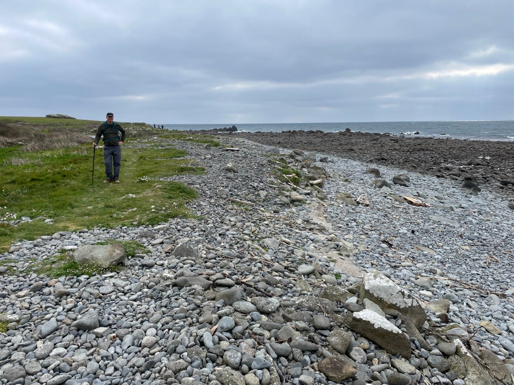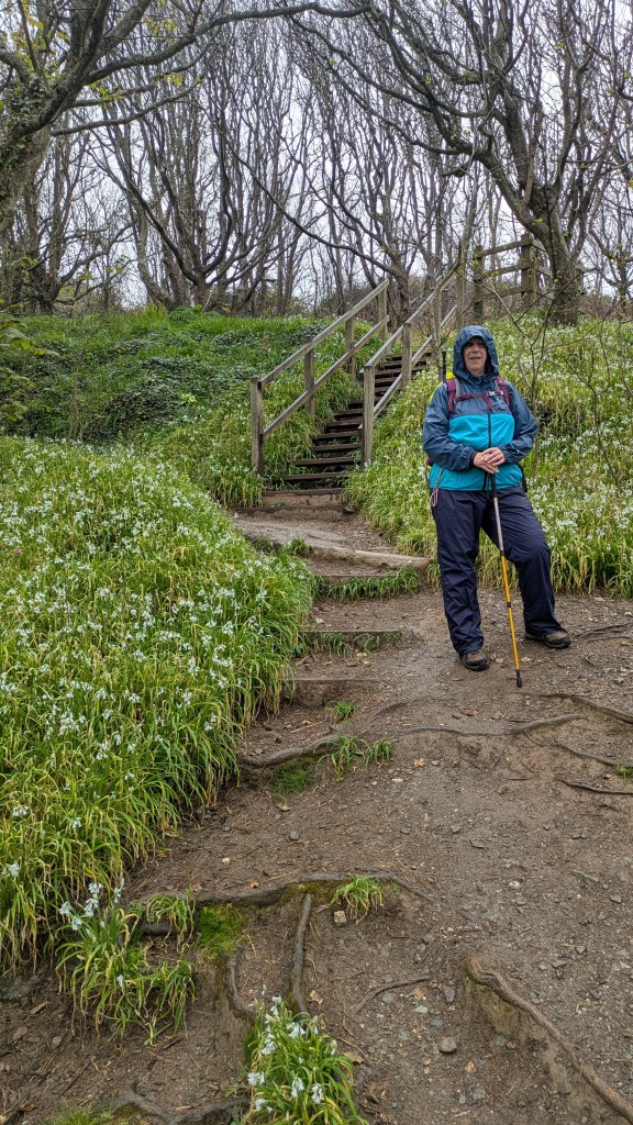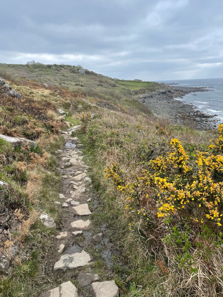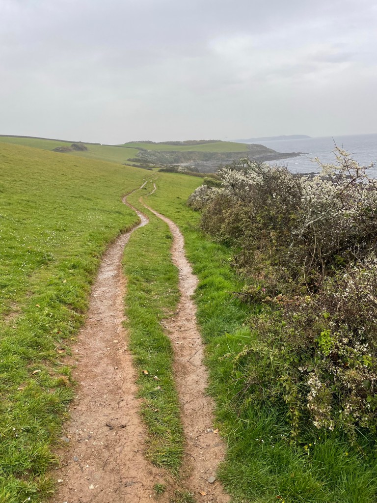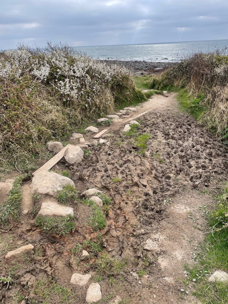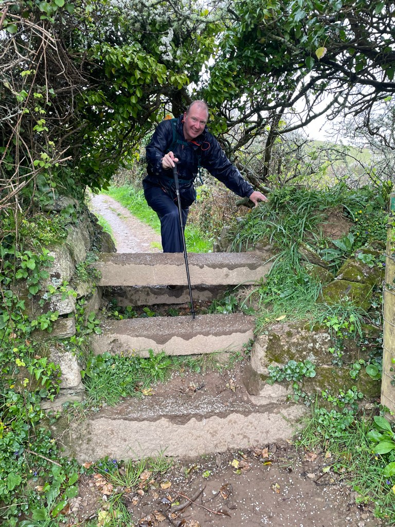 Today, my first voice memo was timed at 11.15am following a 10am start, and I already sounded thoroughly fed up-the rain was described as light but persistent, and wearing waterproofs had left me feeling “claggy”! We were looking forward to a break at a beach cafe ahead. The terrain was actually quite pleasant (in Path terms), it was the conditions making things harder, but check out the pace in the stats, 2.9mph is pretty much top speed for the Path!