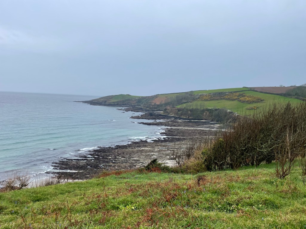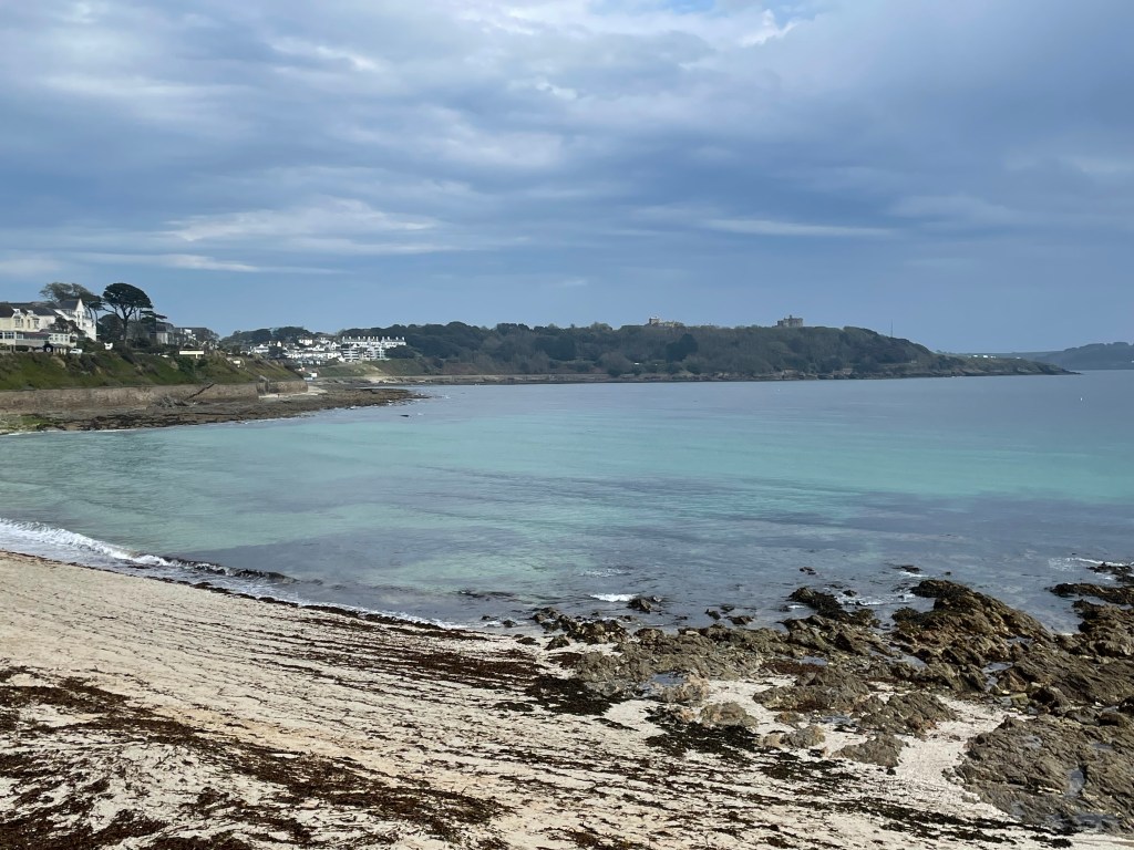 We spent about 45 minutes at the cafe, where we bumped into the couple we’d met at the guest house in Porthallow (so I had to explain why my face had turned red and purple since then). I had coat envy, as the woman was wearing a very effective waterproof coat-I had opted for lightness over protectiveness, but on a day when the rain was ongoing, it just wasn’t man enough for the job (and neither was Paul’s pac a mac top and trousers). I have since purchased a new coat waterproof to 10,000ml, mainly because I got wet, miserable, and extremely grumpy on a subsequent Leg!). We resumed walking at 1.15pm, hoping for another break at Swanpool and arrival in Falmouth around 3pm.