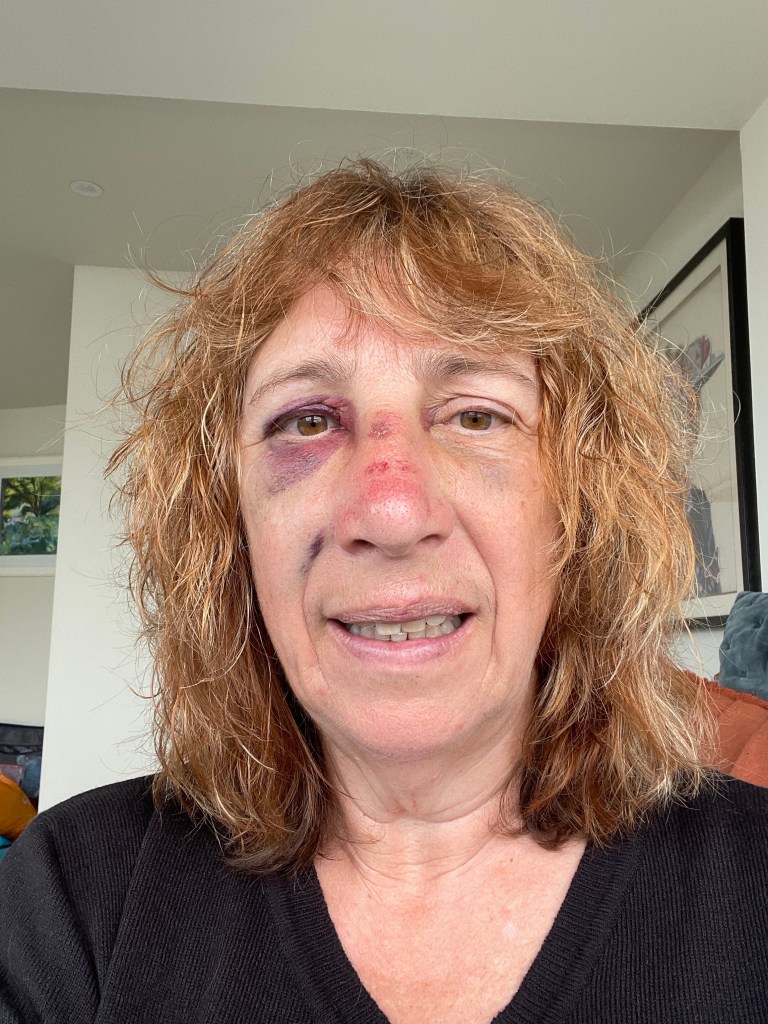We had to sit outside at Swanpool, but the rain had eased off by then. However, we did have to walk all the way through Falmouth, as our booked stay was at the north end of town (though we did have a lovely view over the harbour). Another section successfully completed, although I hadn’t got through it unscathed! Bruising had begun to emerge all around one eye, which would eventually work its way across to the other eye, and in the creases around my mouth. At least I really wasn’t in pain at this stage-about a week later it became very tender and I had a headache, but the visuals were far worse than the actual suffering.