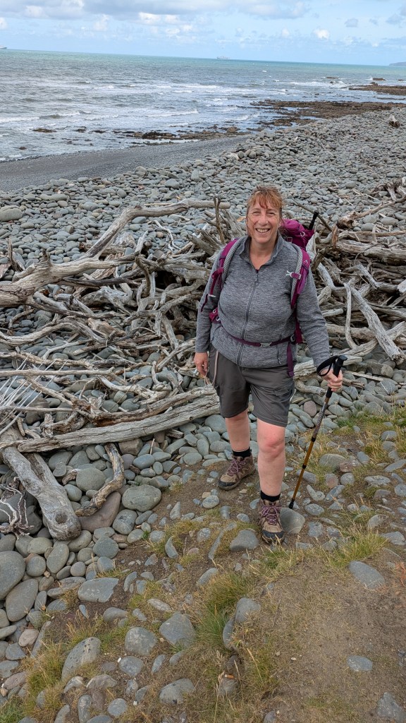We had a packed lunch today, and stopped by the remains of a small fire and sat beside it on a small log from a dead tree. Any seat is better than the ground, but we were both slightly concerned about getting up again as it was so low down! Progress had been satisfactory, we were feeling all right (early days, ha ha) and the Hoops Inn had called to book us into the restaurant for dinner (I love staying in pubs, alcohol readily available and dinner a few steps away).