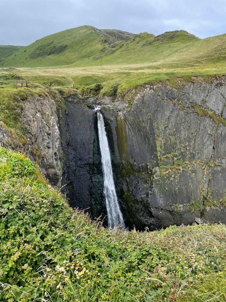 We left at 9.30am in a drizzle, and into a headwind, but a mile later at Speke’s waterfall, the rain had stopped. I thought we had already been up and down the first valley, but it turned out to be just a normal uphill moment on the Path-Paul told me that the infamous series of valleys would commence in the latter half of today’s walk.