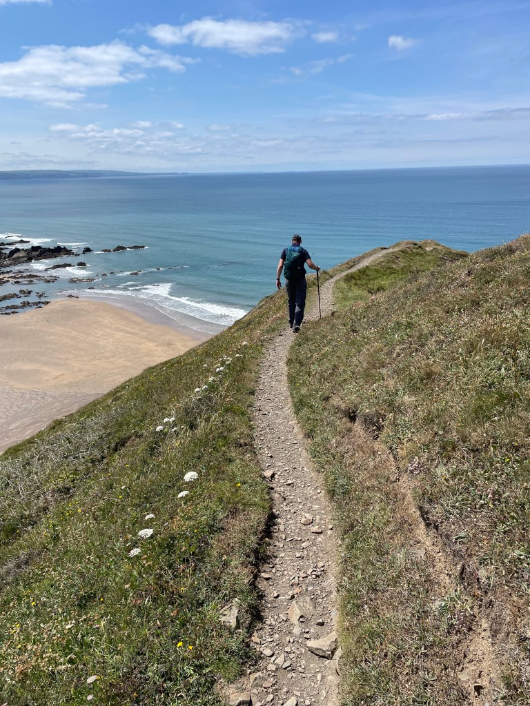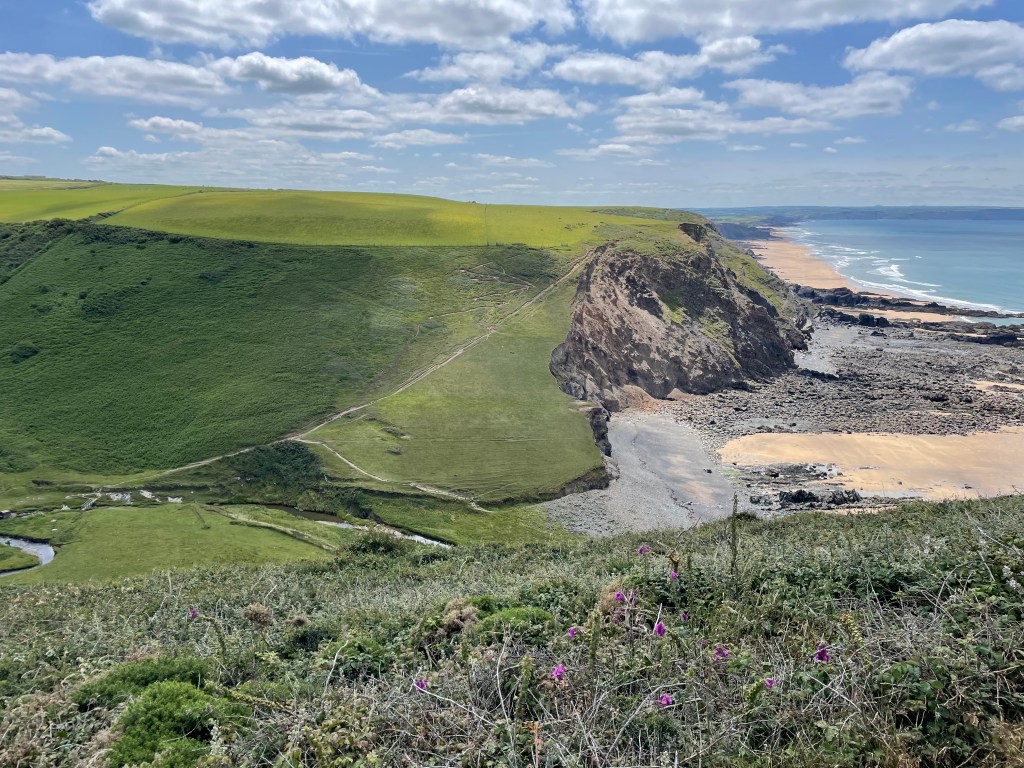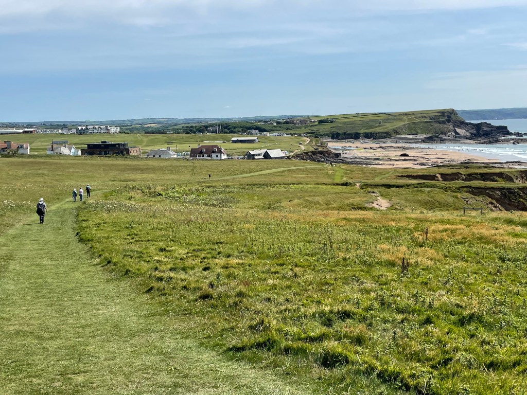 At 12.45pm we reached Steeple Point, where there is not very much aside from a car park, and a very welcome public toilet. For all the previous days I had had to wait until we arrived at our accommodation for relief (another reason for splitting it into manageable chunks) but today I could drink away merrily! We conquered valley eight shortly afterwards, and pushed on to the Sandymouth Cafe, where I downed a long, cold cider. It was nice to have a proper sit down, and T&K joined us-it was very busy there, but we were getting closer to Bude with every step. Actually, it was 2.6 miles away according to Komoot-we set off again at 2.30pm along a grassy track. Easy going, but yikes, was it hot! On the outskirts of Bude, we stopped at another cafe for an ice cream (I don’t mention lunch in my voice memos, but I assume we had arranged another packed lunch from last night’s pub, so we were very well fed and watered today!). At this point, rather than heading straight for our hotel, Paul reprogrammed Komoot to take us to where we had parked our car, so we could drive it to the hotel. We started walking down various streets in the town that didn’t look familiar at all; I was getting to the tired and grumpy stage now so we stopped to review the situation. Basically, Paul had messed up-we were in Burnview Road, whereas we’d actually parked in Downs View Road. As we were closer to our hotel, we headed straight there, and Paul made up for his error by going to collect the car while I took a bath.